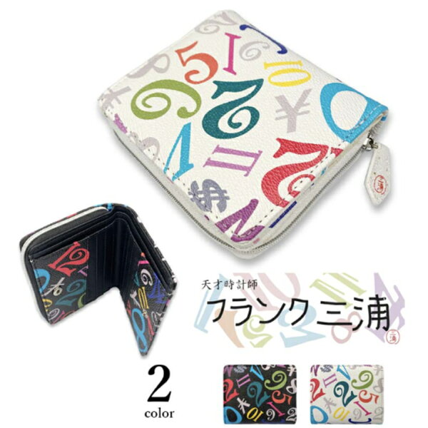 天才時計師のフランク三浦デザインのカラフルモノグラム柄のショートウォレット!カラフルなモノグラムで!パッと見はイケてるデザインで良く見るとフランク三浦!ラウンドファスナーの小銭入れが大きく開閉して使いやすい!内部に「フランク三浦」と「Fukukoi!」の型押しでお金が貯まりそうな雰囲気に!しっとりとしたフェイクレザーレザーで軽くて水にも強くお手入れ簡単!なめらかなジップで滑りが良くて爽快感!。