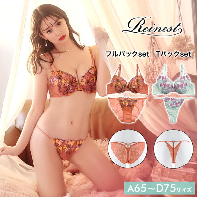 ブラジャー ショーツ ブライト リリー エンブロイダリー ブラジャー & 選べる バック透け フルバック or Tバック ショーツ [Reinest] | 下着 レディース セット tバック ティーバック ランジェリー セクシー ランジェリー ブラ セット 上下セット