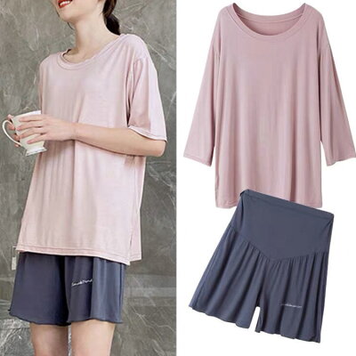 マタニティ パジャマ 半袖 上下セット 夏 ゆったり 薄手 ルームウェア お腹すっぽり ショートパンツ 部屋着 産前/産後 兼用 ズボン 短パン セットアップ 無地 涼しい 大きいサイズ かわいい おしゃれ マタニティウェア 送料無料