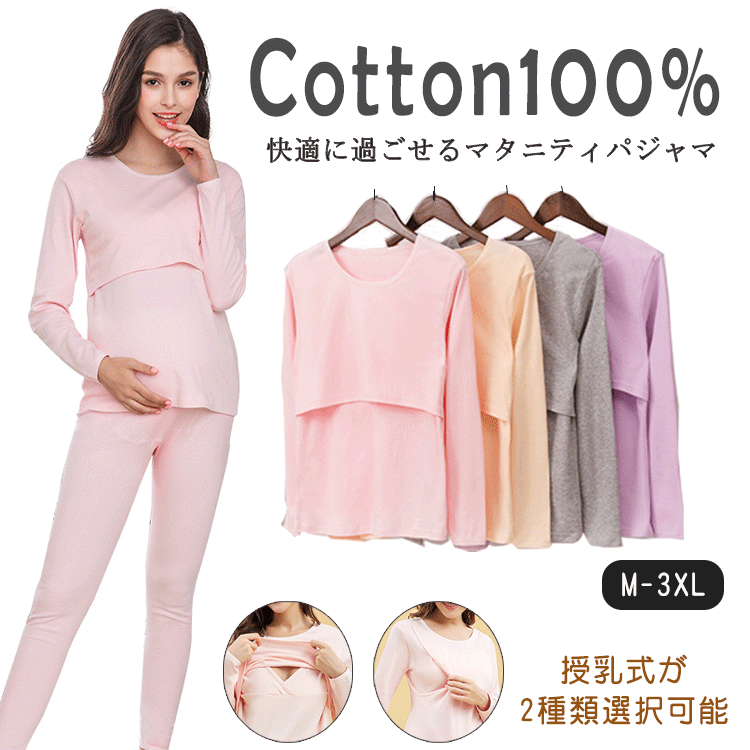 レディース ルームウェア マタニティ パジャマ 授乳対応 ナイトウェア 上下セット ストレッチ 長袖 大きいサイズ マタニティパジャマ 授乳服 妊婦服 綿100% 春 夏 秋 冬 ルームウェアセット 妊婦 ママ 産前 産後 哺乳 睡眠 入院 出産準備 吸汗 通気 伸縮性 M L XL XXL XXXL