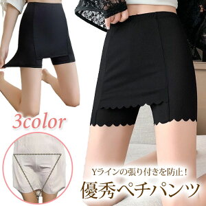 ペチコート ペチパンツ Yライン透け防止 ショート丈 透け防止 薄手 アイスシルク 涼しい ストレッチ ブラック ホワイト ベージュ 1枚 送料無料 メール便