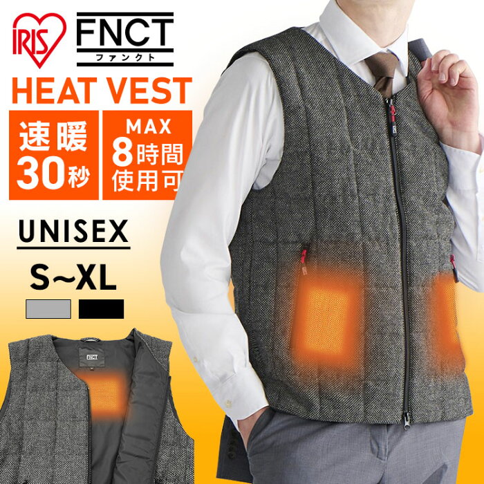 【P5倍★5日限定】ツイード調ヒートベスト FC21612 グレー ネイビー S M L XL送料無料 ベスト ダウンベスト ツイード インナー アウター トップス ヒーター付き バッテリー別売り 男女兼用 ユニセックス カジュアル アイリスオーヤマ
