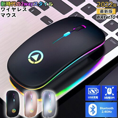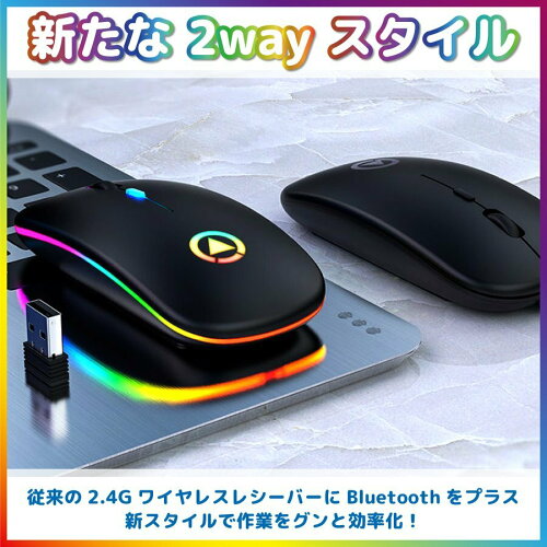 マウス Bluetooth 静音 ワイヤレス 充電式 小型 薄型 無線 USB 2.4GHz DPI 3段階 光学式 Mac Windows Surface Microsoft リモートワーク マウス2 商品詳細 ・2.4GHzワイヤレスとレインボーカラーで日々の作業を彩る! ・Bluetooth接続にも対応。