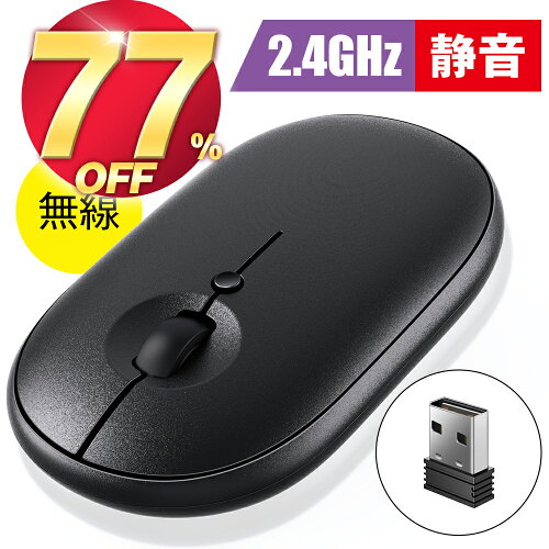 【77%OFF★楽天スーパーSALE】 ワイヤレスマウス 無線 マウス 充電不要 電池式 省エネルギー 光学式 高精度 高感度 薄型 静音 軽量 持ち運び便利 レシーバー収納付 3段調節可能DPI Mac/Windows/surface/Microsoft Proに対応 オフィス/旅行/出張 送料無料 2022最新 ブラック