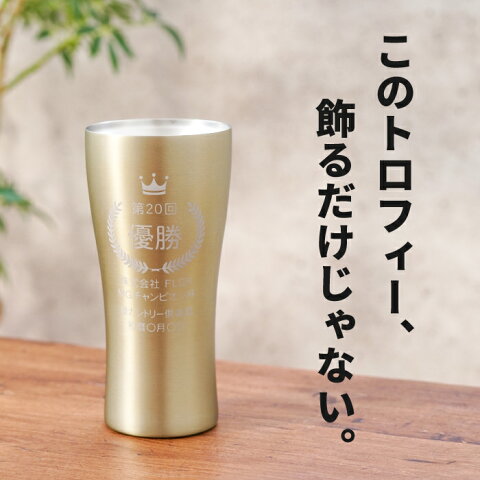■世界に一つの優勝トロフィー 普段遣いできるちょっと変わったトロフィーに大会名や主催名など名前を入れて世界にひとつのトロフィーに! 名入れ トロフィー 表彰 タンブラーは ビール好きな 40代 50代 60代 男性 への 記念品 に おすすめ です! ゴルフ 等 スポーツ 大会 運動会 の 優勝 賞品 として◎ 仕事関係 の 先輩 上司 への 永年勤続 定年 退職 祝い の 贈り物に♪