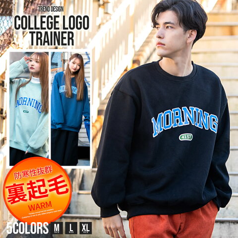 【送料無料】"トレーナー メンズ スウェット スエット 裏起毛 カレッジロゴ トップス クルーネック 長袖 伸縮性 綿ポリ 部屋着 ルームウェア ホワイト ブラック ネイビー M L XL 韓国ファッション カジュアル アメカジ ユニセックス 秋 冬 2022 秋 冬"【あす楽対応】↑