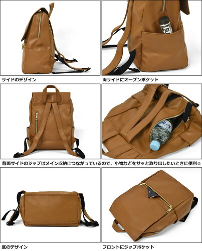 メイン収納の内側にもオープンポケットが1つあり、収納箇所が豊富◎ ■ 背面サイドのジップはメイン収納につながっているので、背負ったまま荷物を取り出すことができ機能的! ■ サイズ・・・たて約35cm×よこ(底部)約24cm×まち約14cm ※多少の誤差はご了承ください ■ PCモニターの画質や環境により、写真と実物の色味が多少異なる場合がございますのでご了承ください。