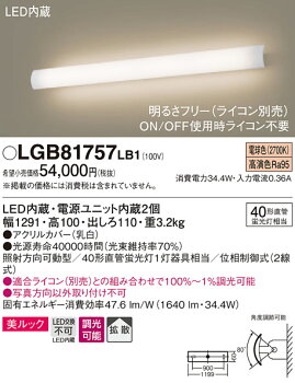 照明 おしゃれパナソニック Panasonic 長手配光ブラケットLGB81757LB1 電球色LGB81754LB1 温白色LGB81750LB1 昼白色上下に光を放つ、可動式カバーの長手配光ブラケット アクリルカバー乳白40形直管蛍光灯1灯器具相当