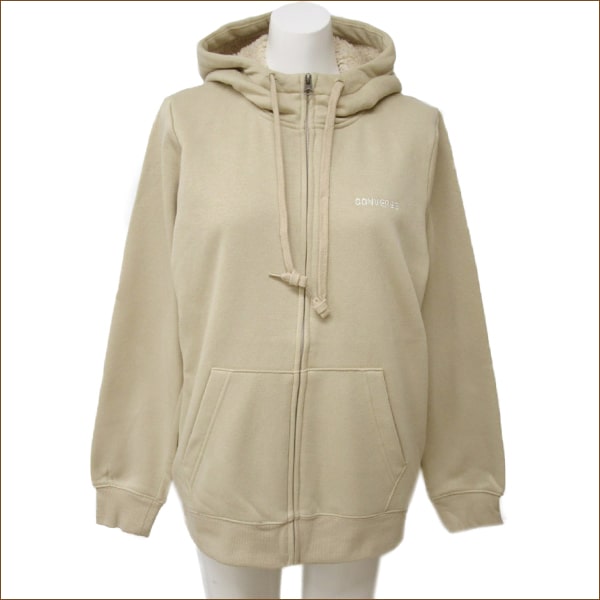 ★ CONVERSE 裏ボア フルジップ パーカー M L ベージュ 0482-4853 コンバース レディース 婦人 女性 長袖 トップス フード付き トレーナー ジップアップ パーカー あったか ルームウェア 部屋着