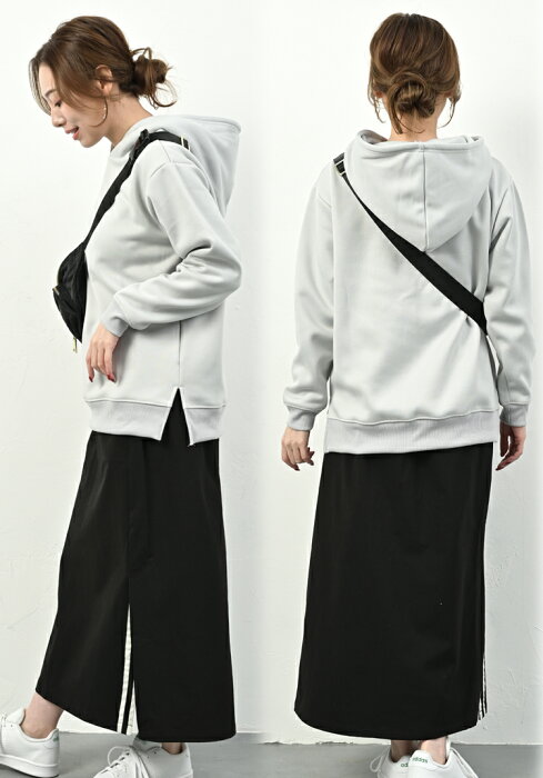 可愛い星柄で暖さをキープしながら大人可愛いシンプルベーシックなカジュアルスタイルを楽しめるフード付きトレーナー。