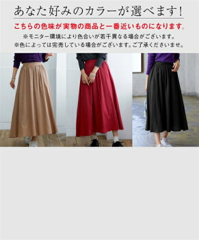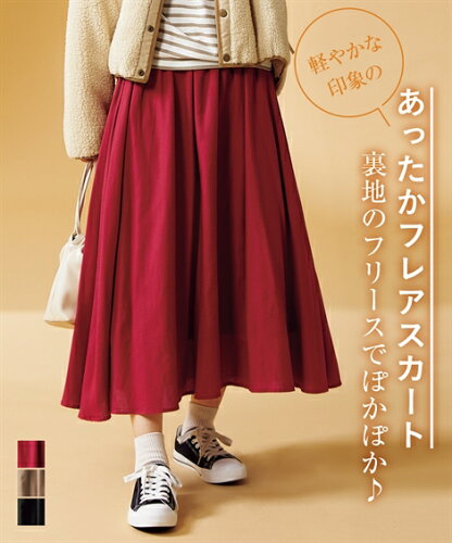 スカート ロング丈 マキシ丈 レディース フリース裏地Aラインフレアギャザー ベージュ/黒/赤 S/M/L/LL ニッセン nissen