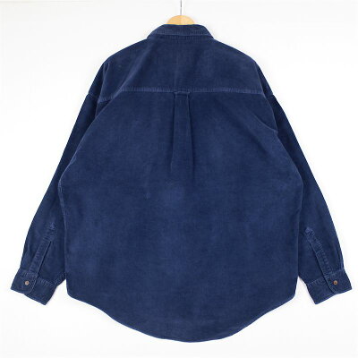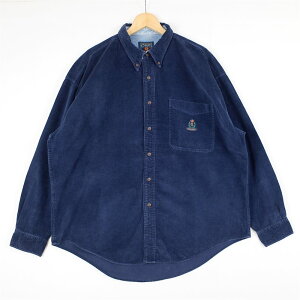 大きいサイズ メンズUS-XLサイズ 80's 90's チャップス ラルフローレン 長袖ボタンダウンシャツ 細畝コーデュロイ 無地 ネイビー 胸囲約142cm オールド ビンテージ CHAPS RALPH LAUREN アメリカ古着 USED BIGサイズ as-0358n【中古】
